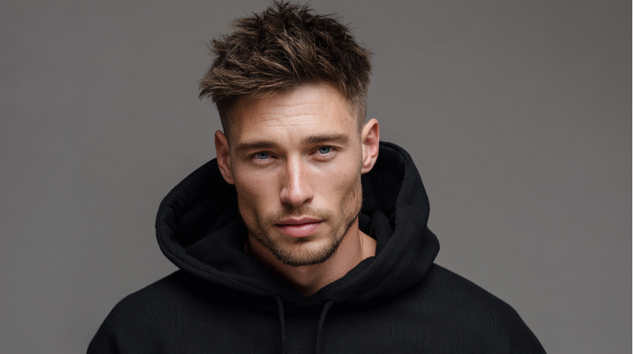 Minimum effort, maximum result. Sounds like your vibe? Enter the textured crop, the ultimate go-to for guys who prefer a clean, modern look without bothering with styling. You’ve probably seen it already: it’s short on both sides and back, with tousled layers on top. It works especially well on straight or wavy hair.