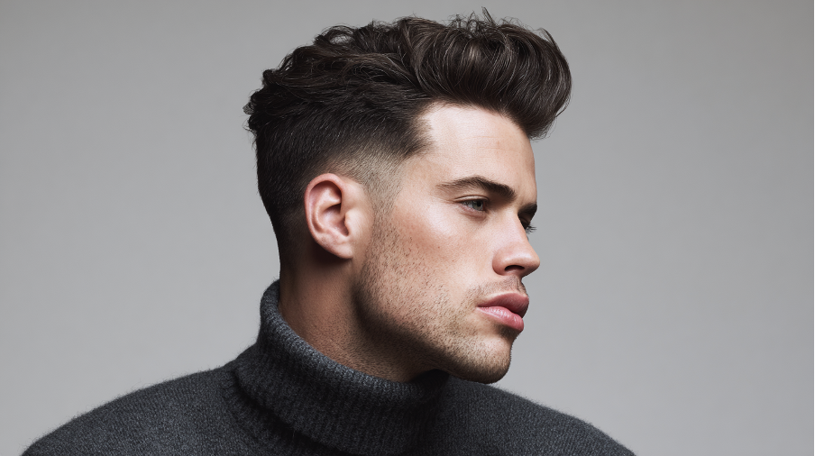 In 2026, the pompadour is less Elvis and more of a classic gentleman’s cut. It combines barely-there sides and a voluminous top swept back, which makes it look great regardless of whether you’re wearing a leather jacket or a sharp suit. Unlike other cuts on this list, the pompadour requires much more maintenance.