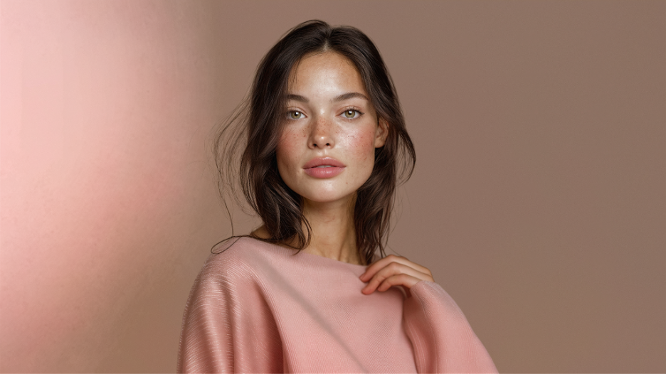 Key features: forehead slightly wider than chin + cheekbones widest + smooth silhouette without sharp transitions.