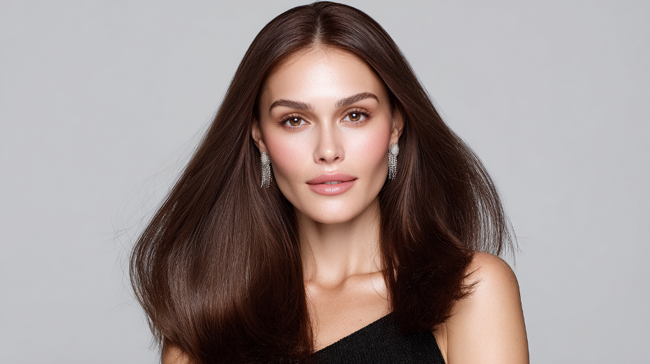 Medium or long smooth hair perfectly emphasizes the symmetry of the oval. A straight parting adds stylish lines and a bit of rigor.
