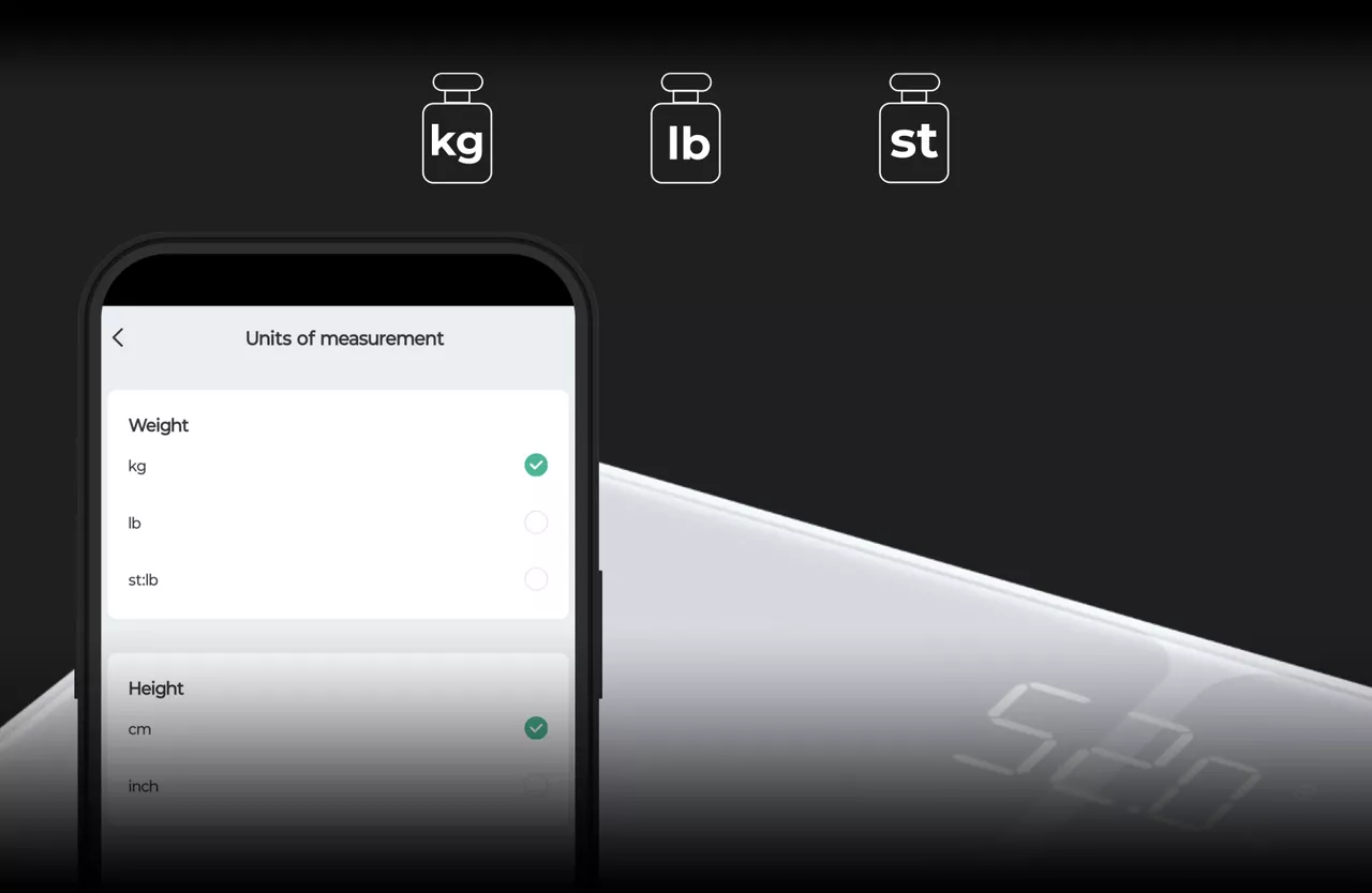 Mišićna masa, indeks visceralne masti, BMI (indeks tjelesne mase), BMR (bazalni metabolizam), postotak tjelesne masti, indeks tjelesne masti, masa tjelesne masti, razina pretilosti, masa kostiju, metabolička dob, tjelesna voda, postotak proteina, kontrola težine, idealna težina, težina bez masti